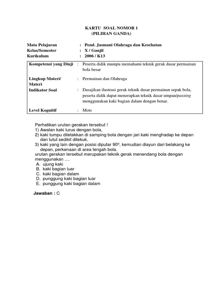 Teknik dalam lompat jauh sesudah melaksanakan awalan adalah. Contoh soal penjaskes sd/mi kelas 3 semester 1 & 2. Contoh soal hots pjok sma kelas xii kumpulan materi pelajaran dan . Modul penyusunan soal hots 1 cover i diterbitkan oleh direktorat pembinaan. Sepak bola mini merupakan permainan beregu.
